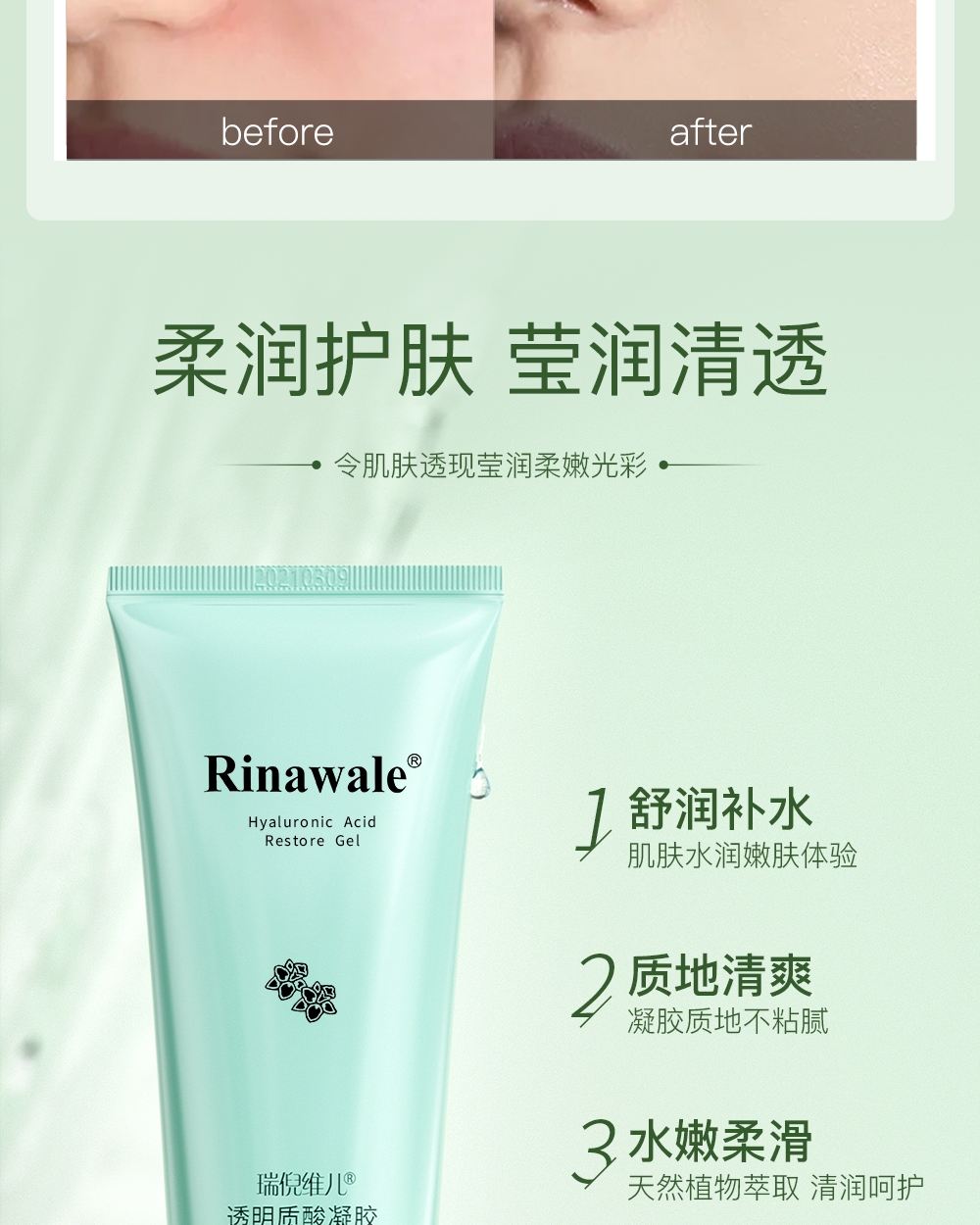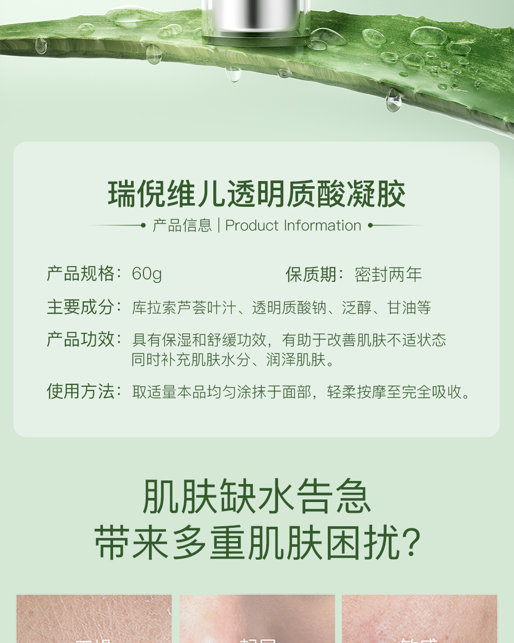 瑞倪维儿透明质酸凝胶舒缓补水保湿芦荟胶康婷官方旗舰正品