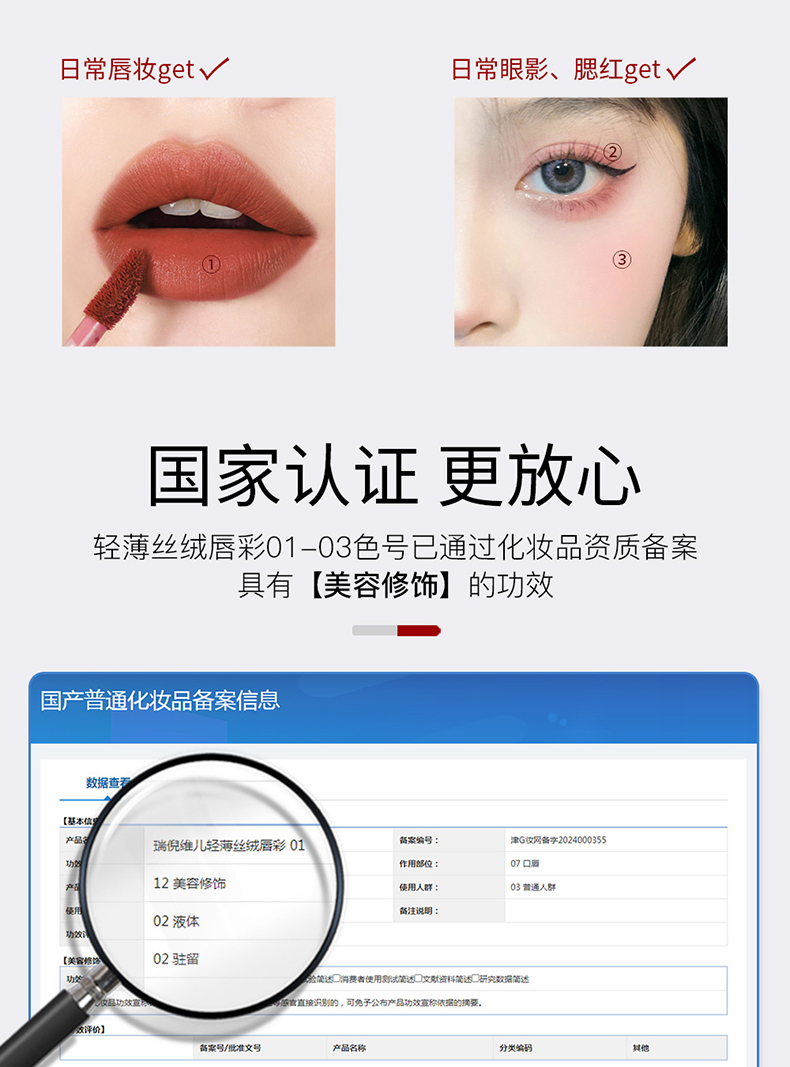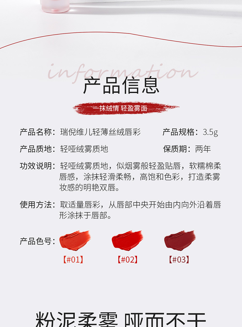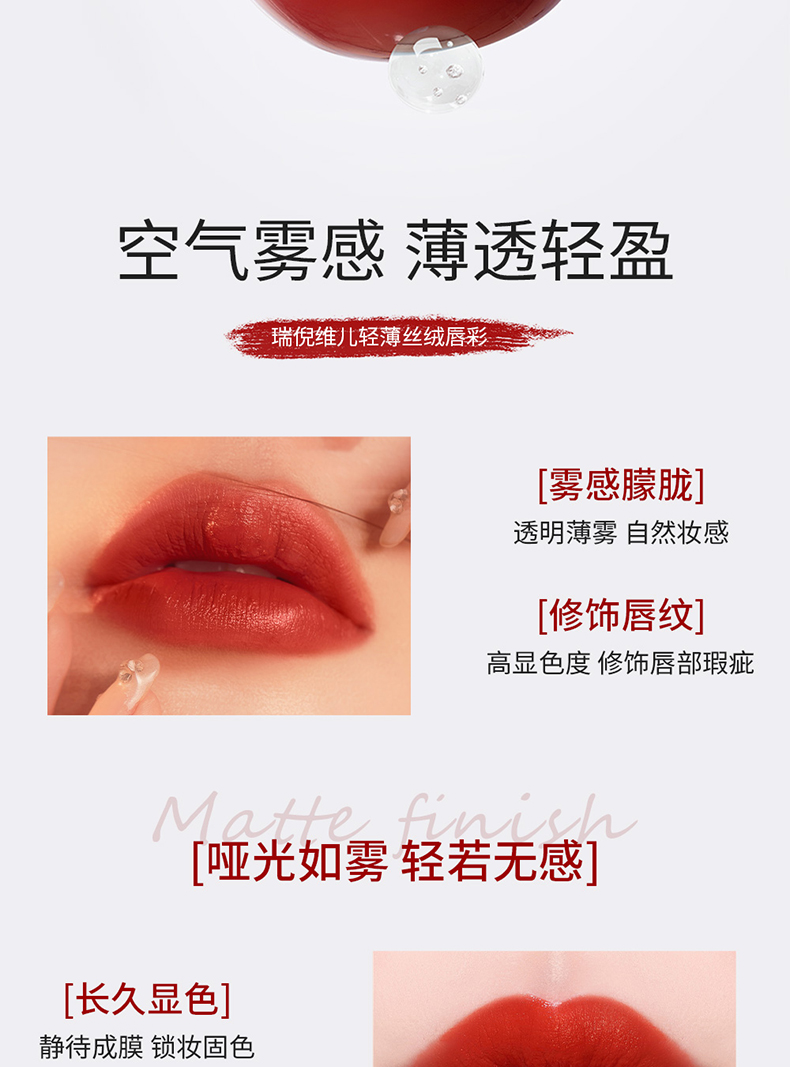 康婷瑞倪维儿旗舰店轻薄丝绒唇彩美容丝滑亚光官方专柜正品化妆品